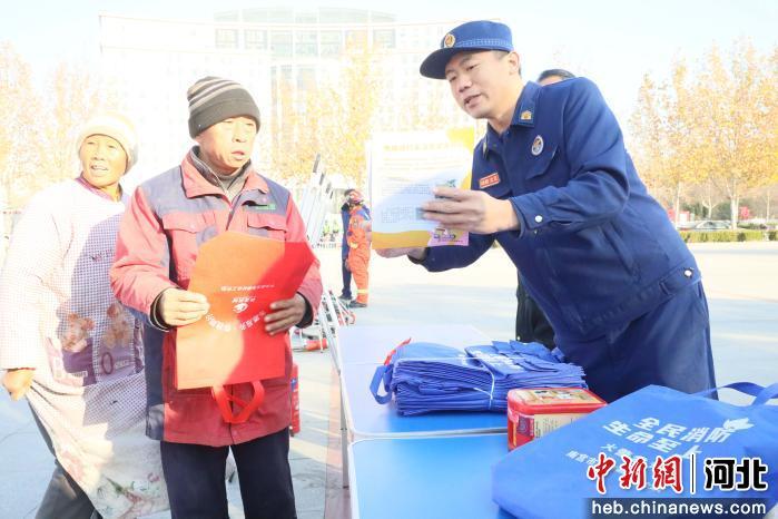 图为在南宫市人民广场,消防员为市民讲解消防安全知识。 田优 摄
