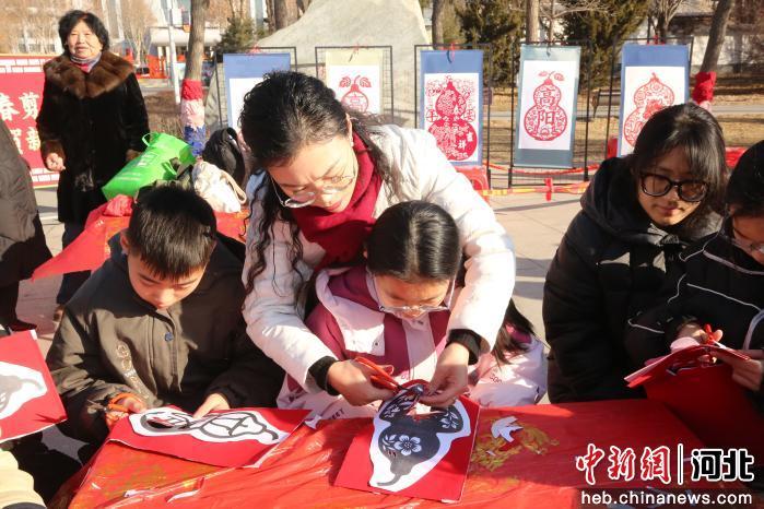 高阳冉氏剪纸项目代表性传承人冉宁教小朋友剪葫芦。 李继业 摄