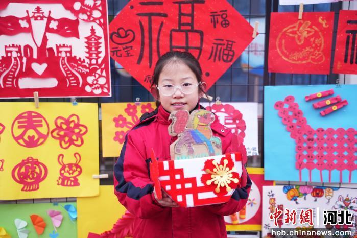 图为3月5日,在河北省隆尧县第五实验小学,学生正在展示小马主题作品。 郭泽鑫 摄