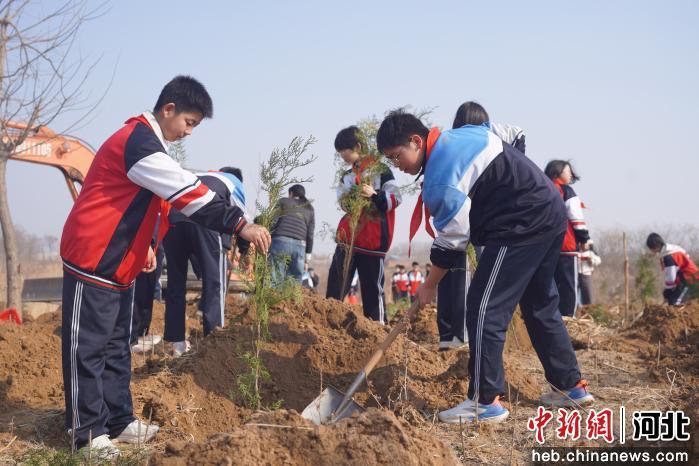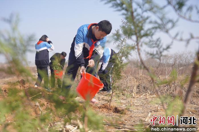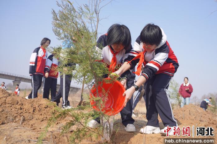 图为内丘县第二中学学生在参加植树活动。 刘媛媛 摄