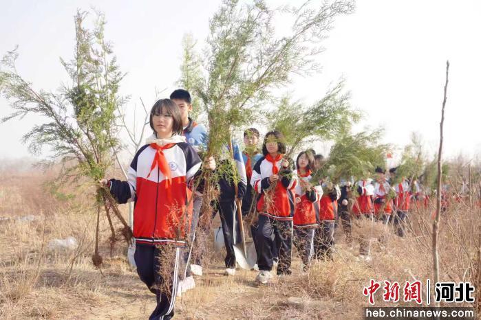 中新网河北新闻3月11日电 (刘媛媛 田娇娇 郝荣)为弘扬雷锋精神、践行绿色发展理念,3月11日,河北省内丘县第二中学组织36名学生志愿者开展义务植树活动,以劳动实践传承奉献精神。