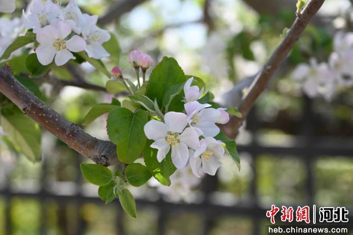 中新网河北新闻4月8日电(包仕龙 赵浩阳)眼下,随着气温回暖,河北省曲周县槐桥镇相公庄村采摘园内千亩苹果花竞相绽放,花香四溢,吸引了众多游客前来观赏游玩。