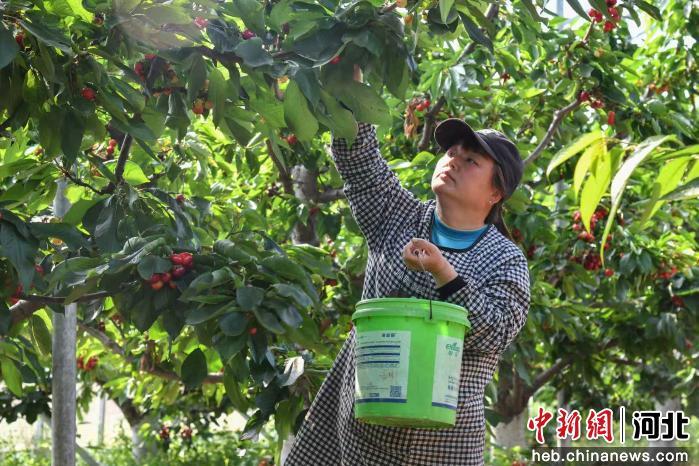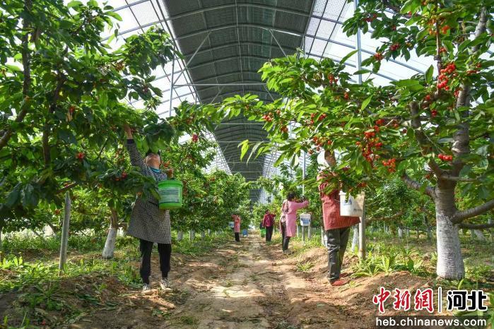 中新网河北新闻4月28日电(周景泽)28日上午,在河北省邯郸市冀南新区南城乡北城村樱桃大棚里,成熟的樱桃挂满枝头,农户们正忙着采收。