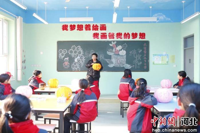 辛集市天宫营乡王下小学邀请农民画画家,带领孩子绘制灯笼。 贾青 摄