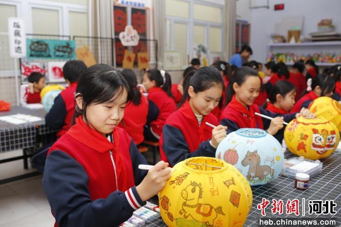 辛集市第十一小学绘制灯笼迎新春。 段文秀 摄