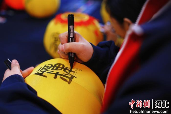 辛集市位伯镇学校组织学生围绕“五音十二律”在灯笼上书写古朴小篆。 段文秀 摄