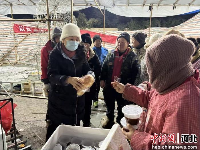 辛集市妇联工作人员为新春灯会现场施工工人送上腊八粥。 张梓琦 摄