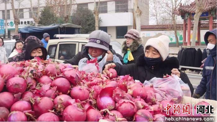 在南智邱镇大集上,市民正在挑选洋葱。 范佳浩 摄