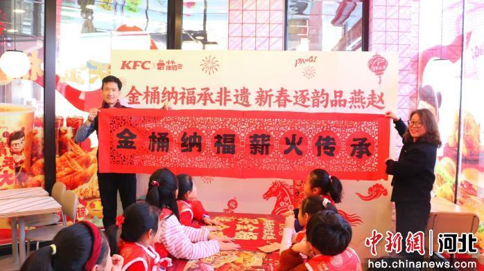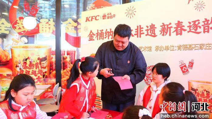 中新网河北新闻2月13日电 (韩晓欧 殷文敏)春节临近,日前,在石家庄棉一织音肯德基餐厅,一场别开生面的非遗体验活动拉开帷幕。石家庄市群众艺术馆联合餐饮企业举办“金桶纳福承非遗 新春逐韵品燕赵”主题互动,将剪纸、刺绣、内画三项燕赵传统技艺带入公共空间。