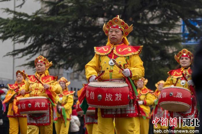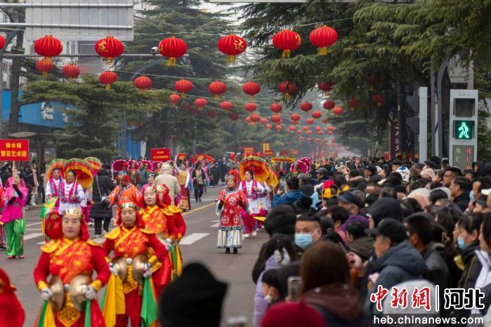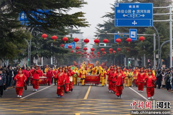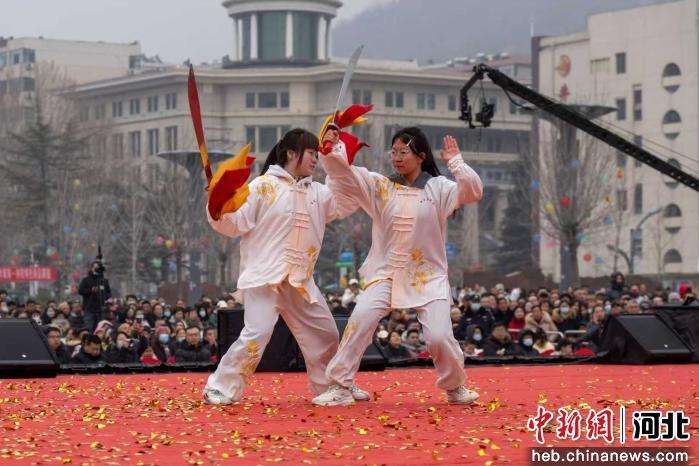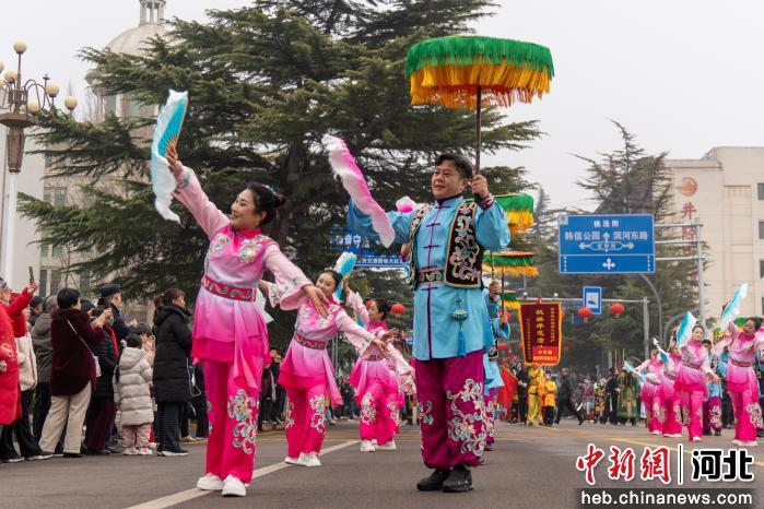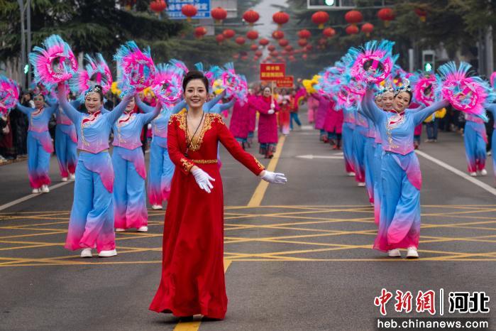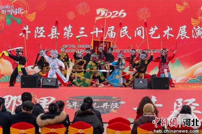 中新网河北新闻3月5日电 (韩晓欧 高开放)3月4日,石家庄市井陉县举办第三十届民间艺术展演。来自全县17个乡镇的136支演出队伍、数千名参演群众齐聚县城,以精彩纷呈的民俗展演寄托新春期盼,彰显千年古县深厚文化底蕴。