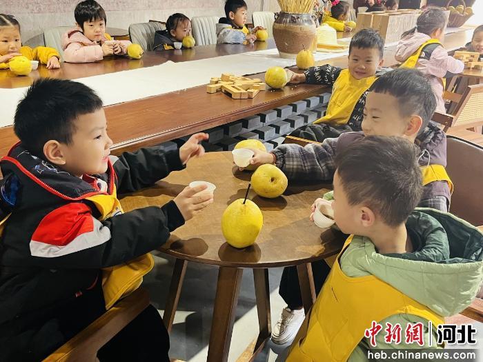 中新网河北新闻3月18日电 (韩晓欧 李崇姿 马朋丽)近日,赵县第二幼儿园组织孩子们走进“相逢赵州”共富工坊,开展非遗文化——赵州古法梨膏制作技艺研学活动,开启梨香探索之旅。