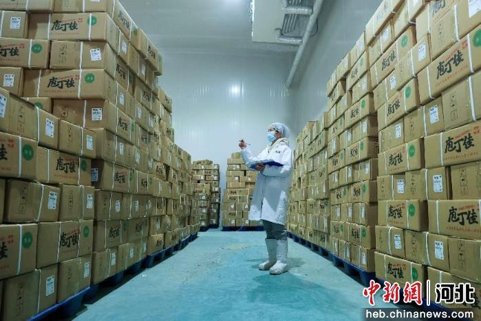 中安信(辛集)食品有限公司工作人员清点仓库货品。 娄雅坤 摄