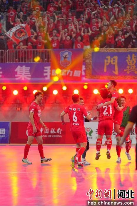 保定队员庆祝夺冠。 娄雅坤 摄