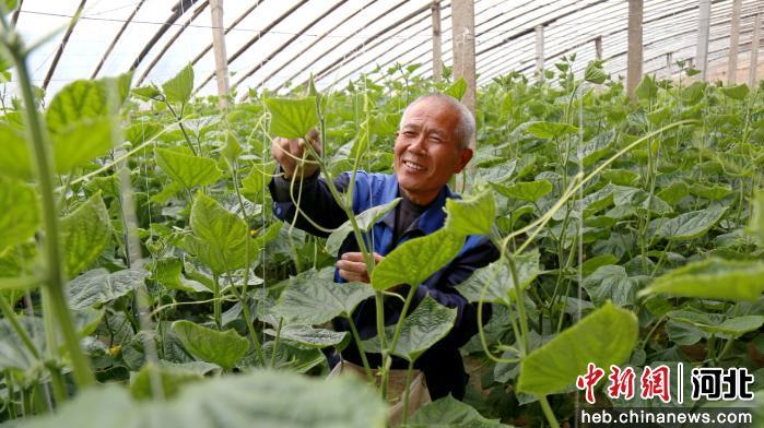 中新网河北新闻11月12日电 (王天译 郭江鹏)吊瓜秧、缠瓜秧、掐瓜须……初冬时节,在河北省邯郸市馆陶县翟庄村的黄瓜大棚内,农户们忙着管护黄瓜秧苗。