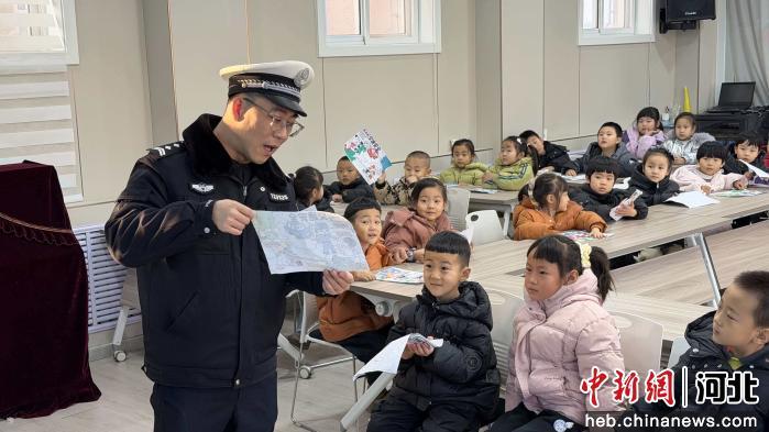 中新网河北新闻12月17日电(高德明 王岩杰)12月16日,张家口蔚县公安局交警大队民警走进县第五幼儿园,开展交通安全普法活动。活动中,民警通过观看动画短片、互动提问和场景模拟的方式,引导孩子轻松掌握交通安全常识,树立安全出行意识。(完)