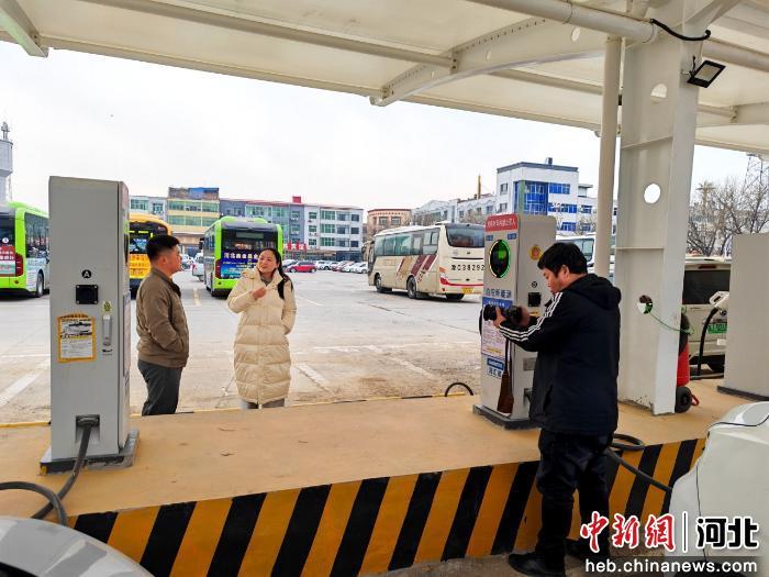 图为自媒体工作者了解本地新增新能源汽车充电桩情况。 赵琳 摄