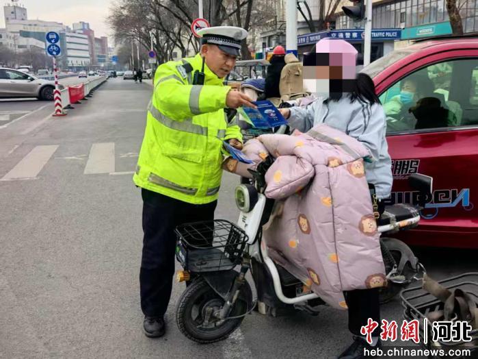 中新网河北新闻1月19日电 (崔志平 王斐)近日,为进一步加强道路交通安全管理,提升骑乘人员交通安全意识,切实保障市民群众的出行安全,河北衡水公安交警“整治+宣传”齐发力,持续开展电动车专项整治行动。