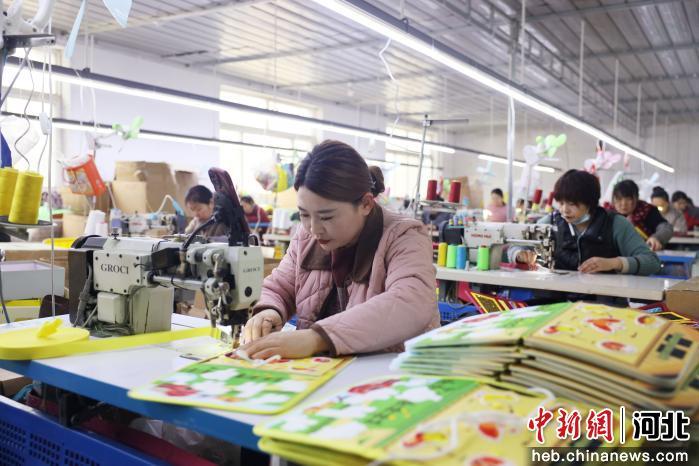 图为在南宫市薛吴村乡王家村一家毛毡制品生产企业,工人在加工毛毡制品。 田优 摄