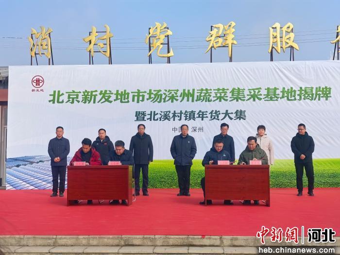 中新网河北新闻2月9日电 (王鹏 刘娟)近日,北京新发地市场深州蔬菜集采基地揭牌暨北溪村镇年货大集在河北省深州市北溪村镇西凌消村举行。现场同步进行了签约仪式,并启动北溪村镇年货大集。