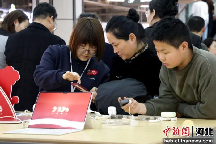 中新网河北新闻2月13日电 (李智婷)13日上午,河北省沧州泊头市多家商场内,手机、平板、智能手表等电子产品销售火热,不少市民带着国补券,趁春节为家人添置新装备。