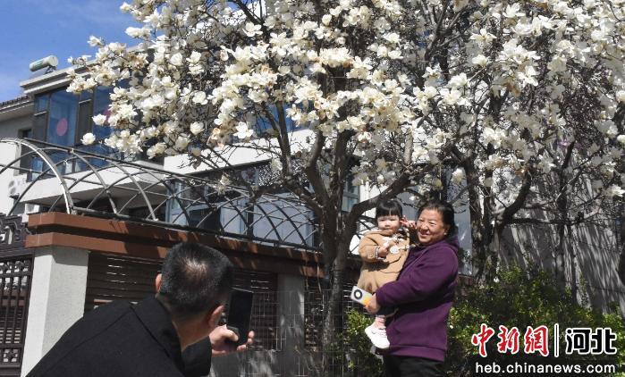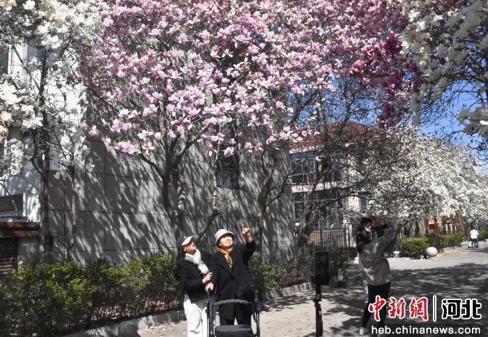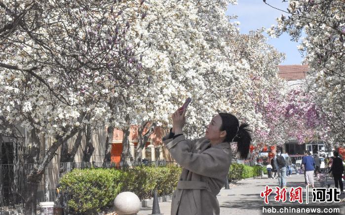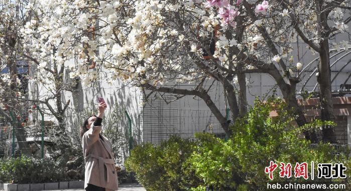 中新网河北新闻4月2日电(郭文珺)近日,河北省遵化市绿梦山庄的玉兰花如期开放。雍容洁白、娇艳粉嫩的花朵交相辉映、风姿绰约,市民游客漫步其间,或驻足观赏,或拍照留念,共赴一场与春花的浪漫之约。(完)