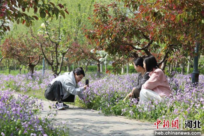 中新网河北新闻4月15日电 (赵华靖 靳东凯)15日,在河北省沧州市南皮县凤凰公园内,白色、粉色、紫色的景观花卉次第绽放,与古朴的亭台、蜿蜒的步道相映成画,层叠的绿意间点缀着点点娇妍,勾勒出清新灵动的春日景致。