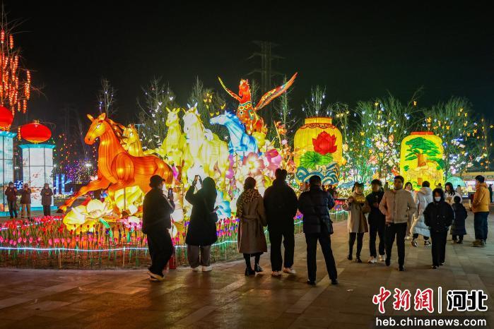 2月10日傍晚,保定市竞秀区2026非遗千灯会在该区极限运动公园启幕。