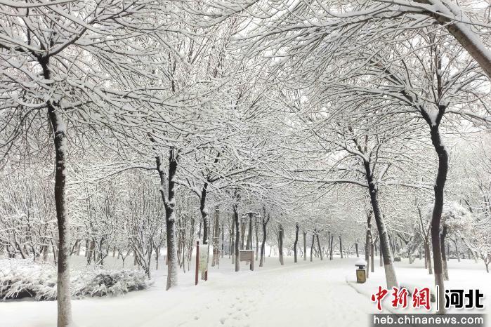 中新网河北新闻3月3日电 (郭江鹏)初春时节,河北省邯郸市馆陶县迎来降雪天气。该县总面积1100亩的公主湖湿地公园被披上一袭素雅银装,勾勒出一幅温婉动人的春日冰雪画卷。
