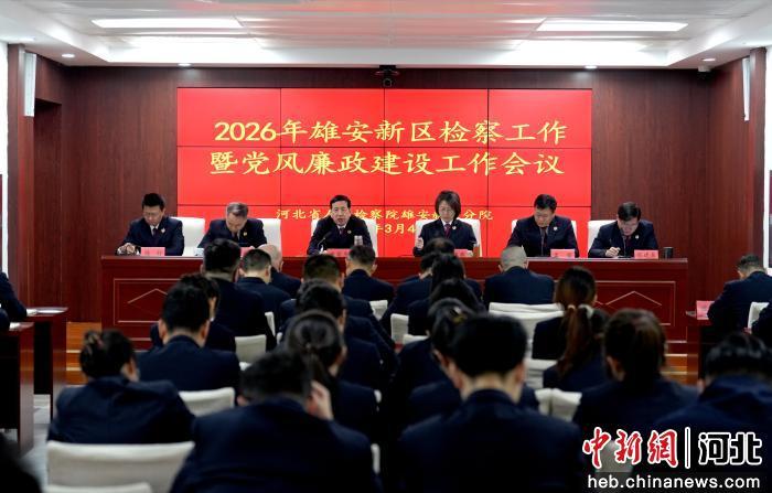 中新网河北新闻3月4日电 (韩冰)4日,2026年雄安新区检察工作暨党风廉政建设工作会议召开。会议深入贯彻落实全国、全省检察长会议和新区2026年工作会议、新区党工委政法工作会议,全省检察机关和新区党风廉政建设工作会议精神,聚焦加速实现雄安检察现代化,更好服务高标准高质量建设现代化城市,总结“十四五”时期工作,研究部署2026年任务。河北省人民检察院雄安新区分院党组书记、检察长黄英杰出席会议并讲话。