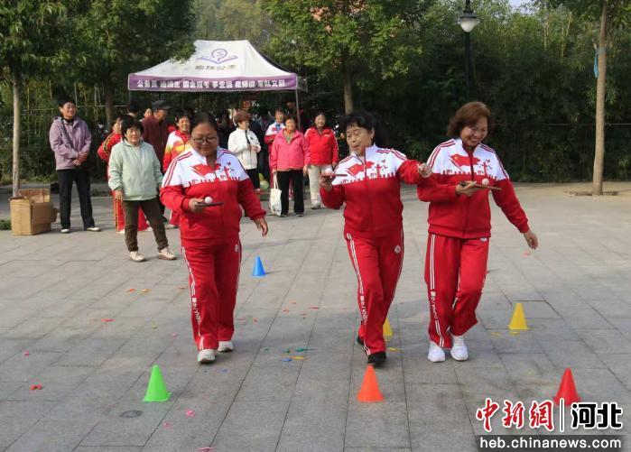 图为在和平东社区,老人们正在参加“接力运球”趣味项目。 薛万涛 摄