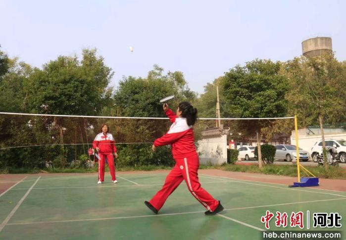 图为在和平东社区,老人们正在进行羽毛球比赛。 薛万涛 摄